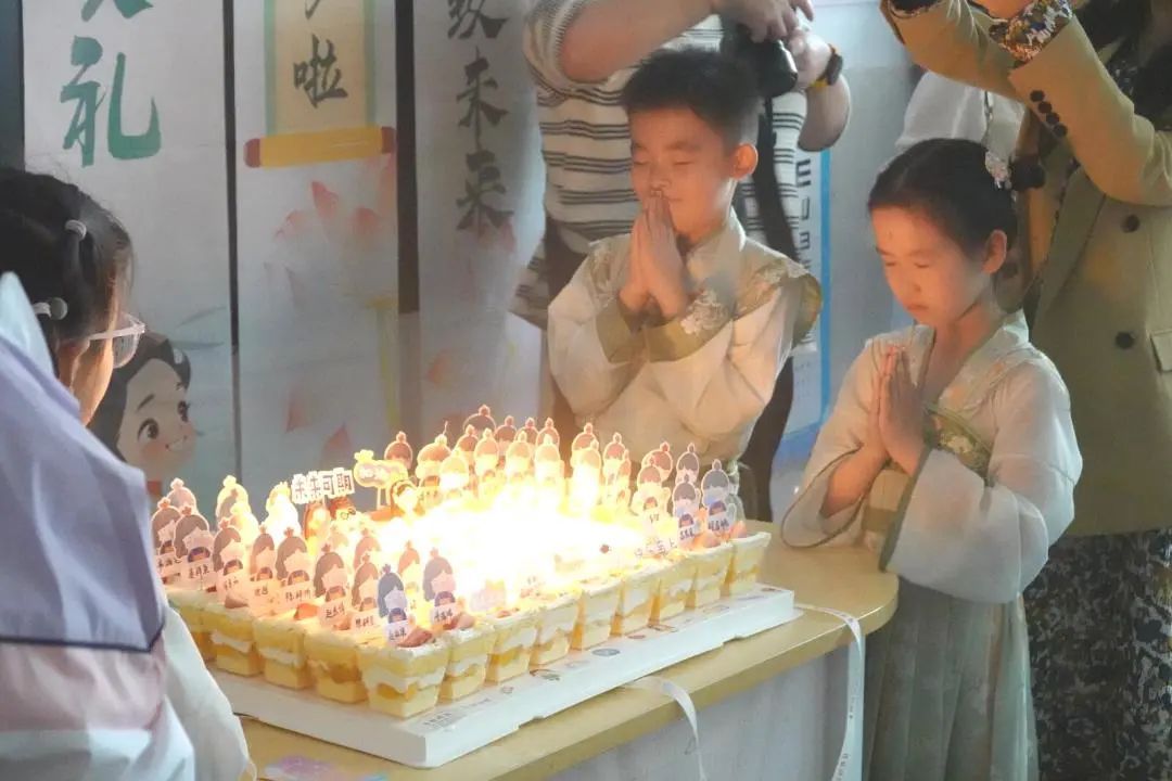 4月22日,南京软件谷第二小学为2022级三年级学生精心举办了以“向阳成长 ‘拾’光而上”为主题的十岁成长仪式。活动现场,小e娃与家长携手穿过“启智门”,将寄托美好期许的信件郑重投进时光信箱,在“时光记忆网”上寻找学校美好生活剪影,再穿过“成长门”,驻足在记录成长轨迹的展架前重温往日成长点滴。仪式上,小e娃们闭目合掌许愿,一起吹灭生日蜡烛,互送祝福;紧接着各班带来精彩的诗词吟诵节目;亲子互读书信环节温情满溢,真挚的文字让许多父母与小e娃热泪盈眶,情不自禁地拥抱彼此。随后,趣味互动游戏与“班级生日会”延续欢乐氛围,小e娃们还将包裹着成长喜悦的糖果分享给低年级学弟学妹,让甜蜜流淌整个校园。这场仪式通过沉浸式体验,让全体三年级学生在感恩与责任交织中深刻体悟成长深意,更为他们未来的成长之路注入温暖而坚定的力量。