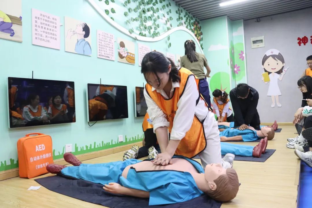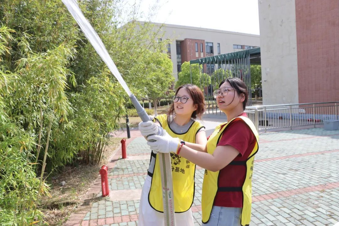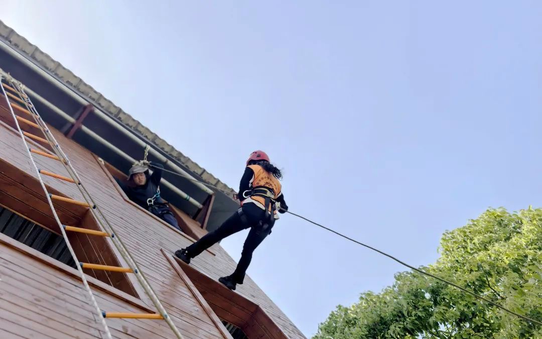在教官的专业指导下,参训教师学习使用灭火器、输水射水设备等消防器材的使用方法;掌握AED应用与CPR心肺复苏术等常用急救手段;体验绳梯和索降等高楼逃生方式。
