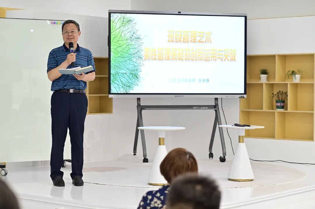 5月22日晚上,学校于初中部图书馆举办了第三届班主任节专家讲座和研讨活动。班主任们首先分享班主任节感言,接着认真聆听江苏省特级教师陈林静老师《班级管理艺术:柔性管理的创新运用与突破》的主题讲座,同时陈老师结合自己的教育教学实际和深度科研经验,对老师们在教育过程中可能遇到的问题进行了专题解答。