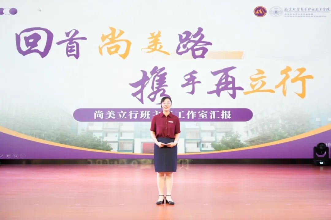 江苏省“尚美立行”班主任工作室主持人薛美红老师以《回首尚美路 携手再立行 》为题,汇报了工作室建设成果与经验。薛美红老师表示工作室秉承学校百年“尚美”精神,以培育“尚灵魂之美、尚智慧之美、尚担当之美、尚追求之美”的“四美”班主任为目标,通过课题研究、团队建设、读书分享、大赛培训等多元形式,打造了一支梯队式专业化班主任队伍,并在各级竞赛中屡获佳绩。未来,工作室将持续深化信息化建设、扩大团队规模、加强校际合作,进一步发挥示范辐射作用,推动立德树人工作高质量发展。