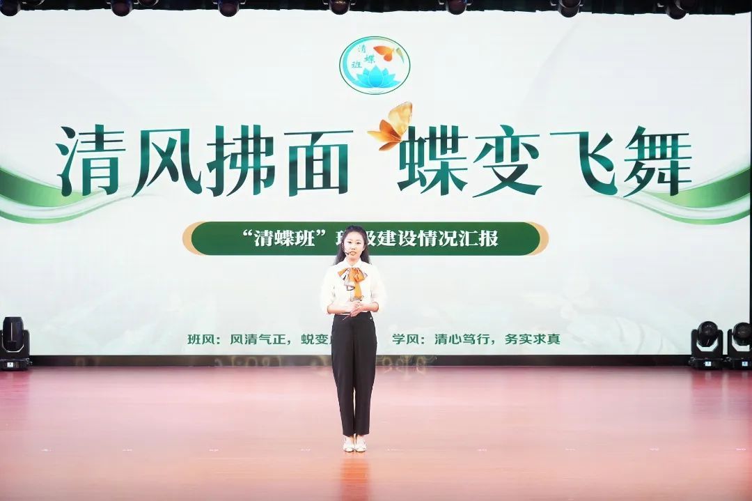 思明班主任工作室梁可馨老师以《清风拂面 蝶变飞舞》为题,系统汇报了“清蝶班”班级建设成果及参赛心路历程。梁可馨老师介绍,“清蝶班”以“清正廉洁”为育人主线,创新构建“清蝶双线”育人模式,实现学生从“化成幼虫期”到“化蝶期”的转变。梁可馨老师深情回顾备赛历程,表示这场“破茧成蝶”的蜕变既是对班主任工作的全面检验,更是一次专业成长的宝贵历练,未来将继续以“清风育人”的理念,助力学生在新时代破茧成蝶、展翅高飞。