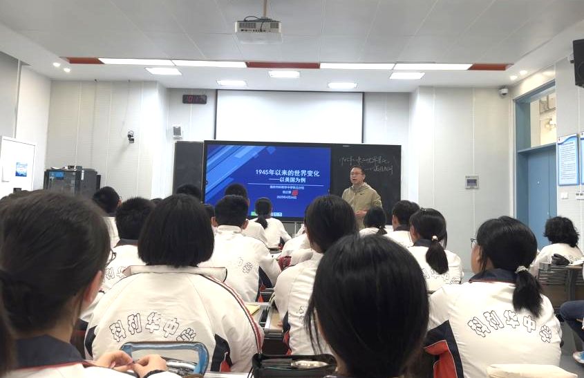 4月24日,玄武区历史教研活动在南京市科利华中学铁北分校顺利召开。本次活动中,学校倪立擎老师带来初三复习课《1945年以来的世界变化——以美国为例》。倪老师以新颖的教学设计与扎实的教学功底,为全区历史教师呈现了一节精彩的充满高阶思维的课堂,充分彰显了学校历史组的教学实力与创新精神。