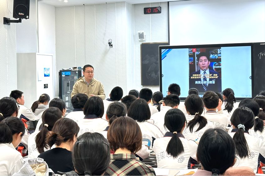 倪立擎老师的课堂极具特色。课堂上,他以美国为切入点,围绕1945年以来世界变化这一核心,通过翔实的史料和精心设计的问题链,引导学生层层深入剖析历史事件背后的因果关系。从二战后美国经济的繁荣与波动,到其对外政策的演变,再到文化领域的发展,倪老师将繁杂的知识点巧妙串联,构建起清晰的知识体系,培养学生的时空观念与分析归纳能力。课堂互动频繁,学生们积极思考、热烈讨论,思维火花不断迸发。倪老师还注重培养学生的高阶思维,鼓励学生突破常规视角,让学生在掌握知识的同时,更提升了历史学科核心素养。
