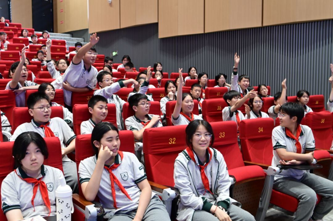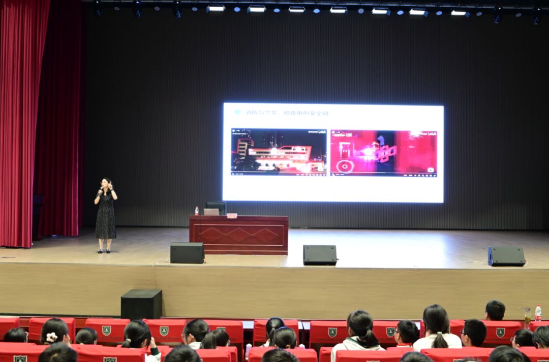 活动现场,李琴老师以生动的语言、详实的资料,为同学们勾勒出凌晨时分,祖国各地在不同岗位上奋斗的画面,从坚守岗位的边防战士,到辛勤劳作的环卫工人,从忙碌的快递员到时刻待命的消防战士,每一个平凡岗位上的坚守,都彰显着对祖国深沉的热爱。同学们全神贯注,被一个个故事深深吸引,沉浸在这独特视角下的爱国情怀之中。在互动环节,同学们积极踊跃提问发言。有的同学分享自己身边家人在平凡岗位上为国家发展贡献力量的故事,有的则探讨自己未来如何在学习和生活中践行爱国精神。现场气氛热烈,充分展现出青少年学生对爱国精神的深刻理解与积极追求。