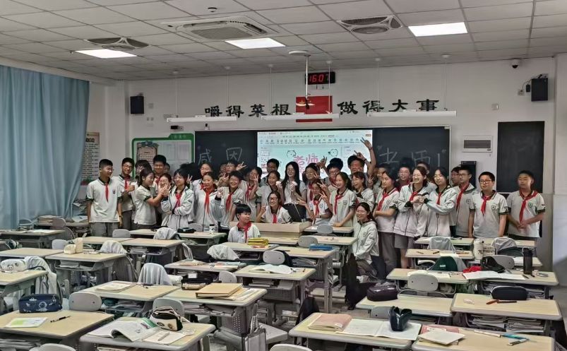 班会尾声,全班与班主任合影留念。镜头里,师生笑容灿烂,为这场充满温度的班会画上圆满句号。