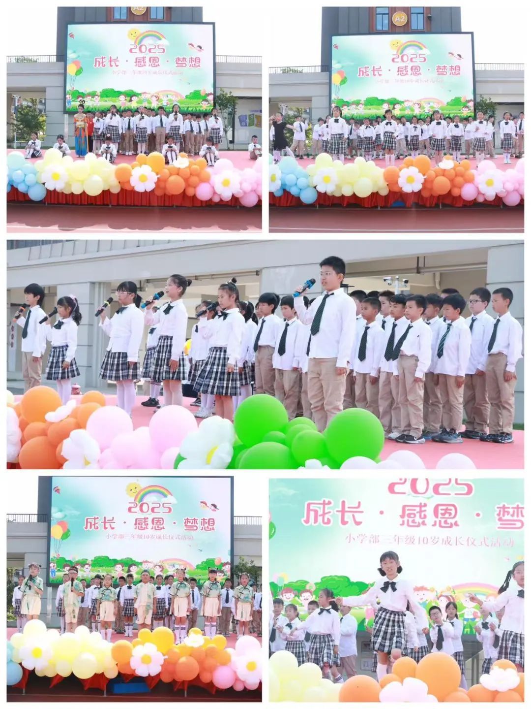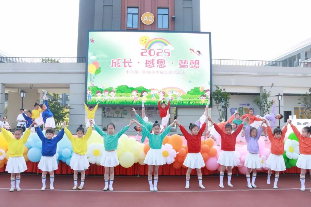 在欢快的音乐声中,孩子们携手父母跨过象征成长的“成长门”。接着,各班级献上精彩纷呈的表演。全体学生庄严宣誓《十岁宣誓》,铿锵有力的誓言展现了他们的决心与信心。活动在校歌的合唱中圆满落幕。