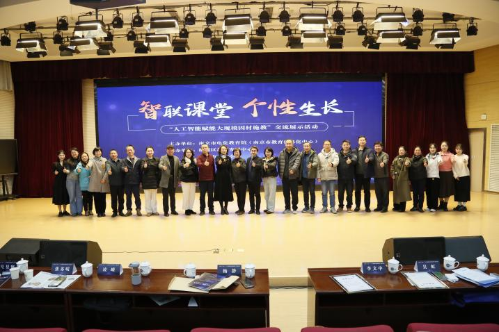 冬日的仙林校园暖意融融,智慧的火花激荡碰撞。2026年1月7日下午,由南京市电化教育馆(南京市教育信息化中心)主办的"人工智能赋能大规模因材施教"交流展示活动在南京市金陵小学隆重举行。来自南京市各区电教中心负责人、学科教师代表齐聚一堂,通过现场学习与在线观摩相结合的方式,共同见证数字化教学与学科融合的创新实践成果。莅临本次活动现场的领导嘉宾有:南京市电化教育馆馆长张苏皖、副馆长凌嵘、应用推广部主任吴昱寰、副主任马睿、数字化教学项目负责人杨静、人工智能教育项目负责人施梦娴、南京大学计算机学院教授、博导李文中、南京师范大学教育科学学院教授乔雪峰、上海世外智慧教育研究院吴虹、南京市教育技术装备中心技术科科长宋涛、以及关心学校成长的栖霞区教师发展中心各位领导们。与此同时陕西省商洛市小学与青海省西宁市南川西路小学的校长老师们,也正在线上同步关注参与本次活动。
