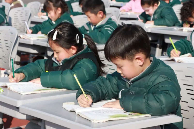 朗读与写字环节,朗朗书声悦耳动听,握笔姿势规范舒展,充分展现了各班日常训练的成果和独具特色的班级风采。