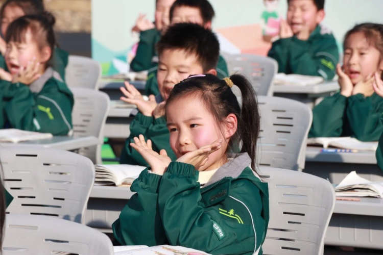 同学们稚嫩的脸庞上满是认真,标准的姿势、响亮的口号、有序的互动,赢得了现场师生的阵阵掌声。