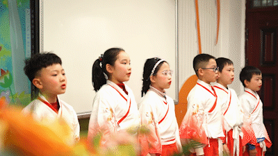 学生们演绎了“越韵古诗”吟唱,展现传统文化的魅力。“越韵古诗”项目团长朱蔺和指导教师朱凤玲分享对“越韵古诗”的传唱心得,为现场师生提供宝贵的经验。